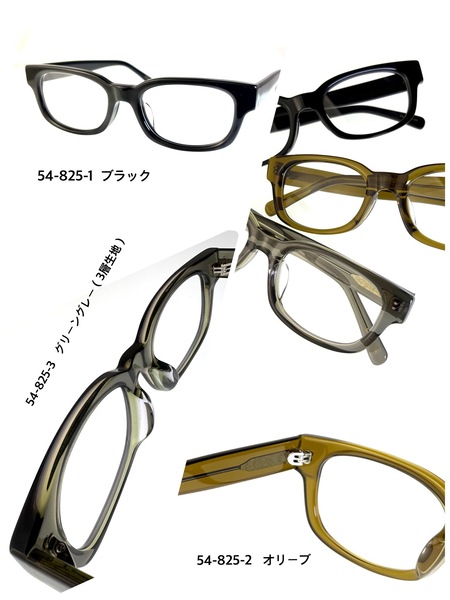 54-825 細身のスクエアーモデルのアセテートフレームです。 レンズ周りにTVカットを施してあるので堀の深い印象です。 定番のクロに加え、クリアオリーブとちょっと変わったグリーングレー(青/ピンク/緑の3層生地)3層生地とは異なる色の生地を重ねることで現れる絶妙な色です。 見る角度や組み合わせるレンズカラーによって見え方が変わってきます。 丈夫な5枚蝶番と鼻乗りが良い厚めの鼻パッドを使用しています。 飾り等は施されていませんので、太めのテンプル外側にもロゴ印字可能です。 Size:52□20-145全長:145mm×41mmColor:(1)クロ (2)クリアオリーブ (3)グリーングレー(3層生地) online shop 一覧へ戻る